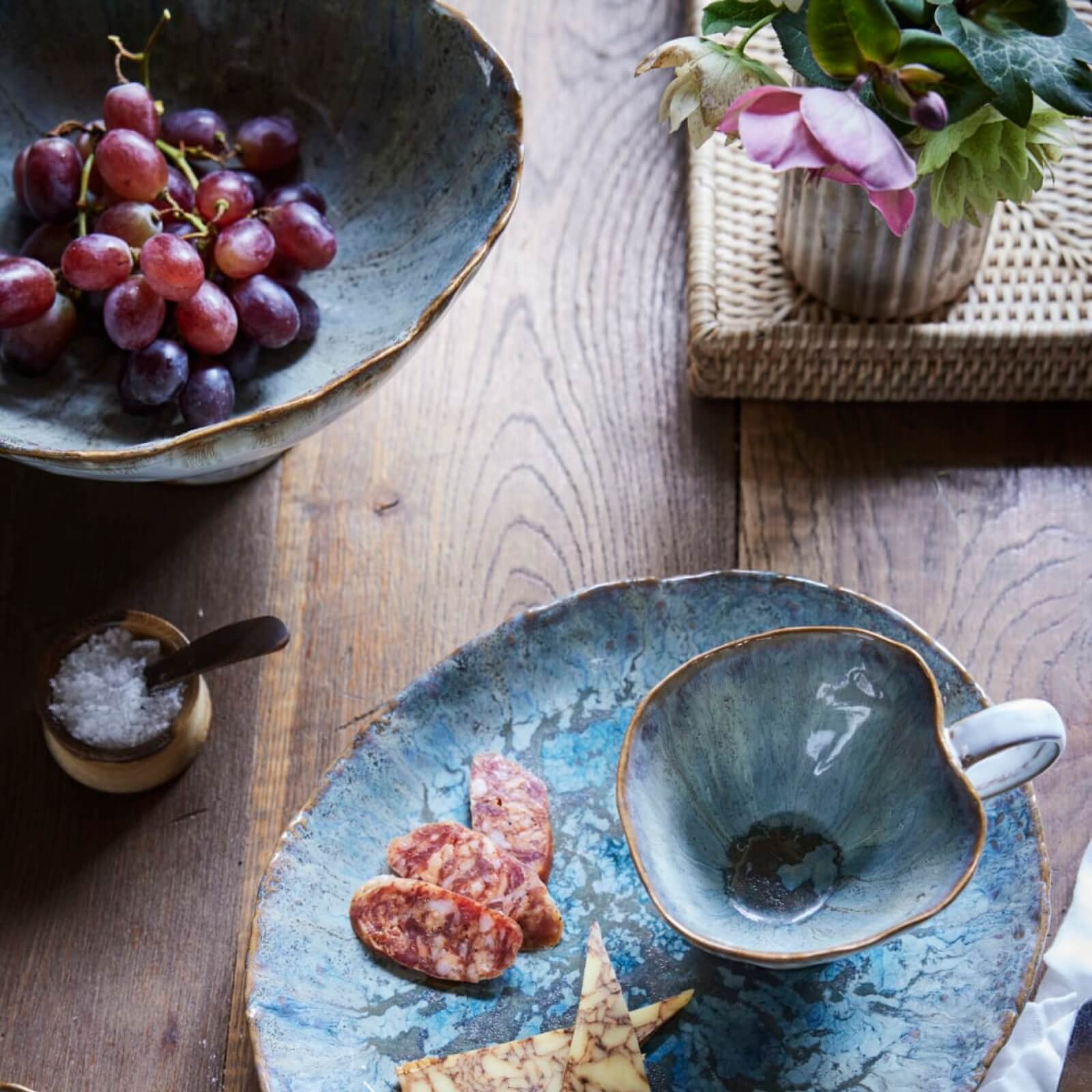 Die Schale wird handgefertigt mit einer einzigartigen reaktiven Glasur und ist für diejenigen gedacht, die eine Spur der Natur an ihrem Frühstückstisch suchen. Jedes Stück ist aus hochwertiger Keramik gefertigt. Die erdigen Grüntöne evozieren die beruhigenden Farbtöne der Natur. Passende Tassen sind ebenso verfügbar.